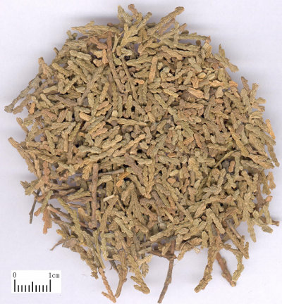 Можно собирать в любое время года. Отрезают маленькие веточки, удаляют толстые стебли. Сушат в тени. Режут. Используют в необработанном виде или после поджаривания до обгорелого черного цвета поверхности лекарства