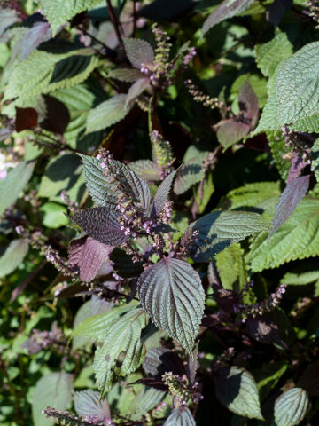 - периллы кустарниковой курчавой — Perilla frutescens (L.) var. crispa (Thunb.) Hand. Mazz. (сем. Губоцветные — Labiatae);