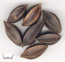 Собирают в сентябре-октябре, когда кожура плода приобретает темно-фиолетовый цвет. Сушат на солнце. Удаляют скорлупу. Используют зерна в необработанном виде или после поджаривания