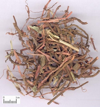 Корень марены сердцелистной — Rubia cordifolia L. (семейство Мареновые — Rubiaceae).